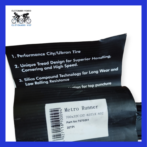 - El neumático aro 700x32c Metro Runner de la marca Arisun es ideal para bicicletas de ruta. Ofrece tracción, durabilidad y resistencia a pinchazos. Tiene un diseño de banda de rodadura que proporciona agarre en diferentes superficies. Es aerodinámico y ofrece una conducción eficiente y rápida. Es resistente, duradero y con buen agarre.